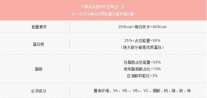 ▲《代餐食品》团体标准对能量的要求