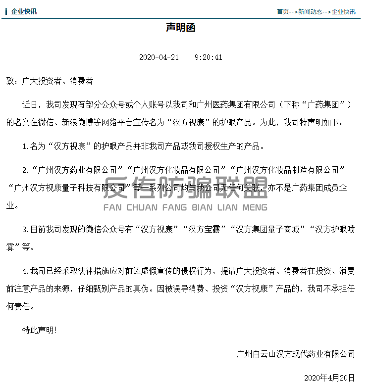 以中草药为托词,能包治百病,打着“汉方药业”的旗帜惨遭打脸后又宣称与“白云山潘高寿”公司合作,虚假宣传、涉嫌传销的汉方视康量子眼部喷雾究竟还能走多远?我们试目以待,反传防骗联盟将持续跟进。