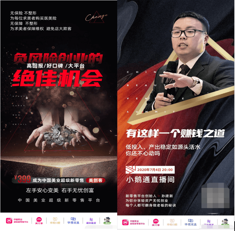 据宣传称,2020年7月8日全新发布的美业超级新零售能让参与者实现“告别啃老实现财务自由,告别迷茫爆赚人生第一桶金”的目标。