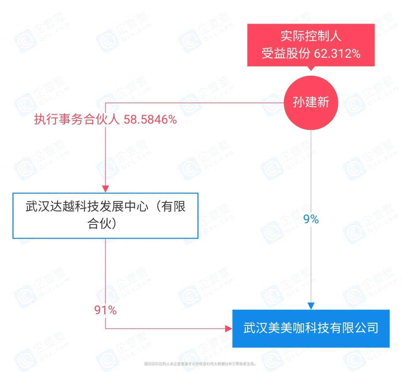 孙建新为武汉美美咖科技有限公司实际控制人,同时担任法人和执行董事等职务。