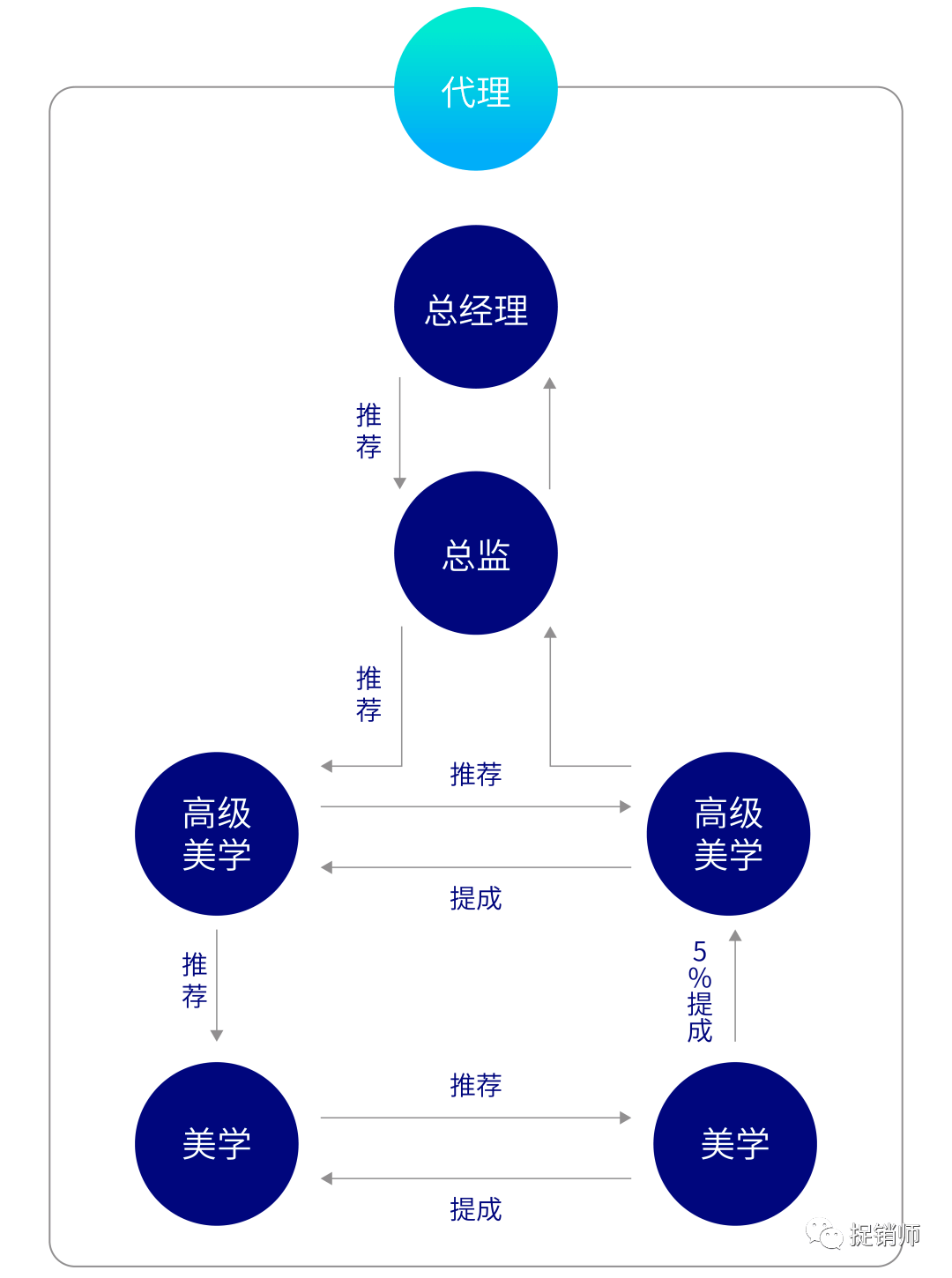 总监:5万元加盟费+5000元保证金,升级条件300万团队业绩培养3个直推总监;