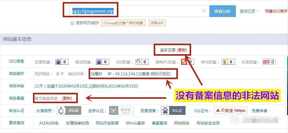 根据注册链接,利箭在出击查到了网站信息:服务器在香港,创建网站21天,没有备案信息,这是早就准备好了退路的骗局!一旦跑路,谁搞的盘子都不知道,只能自尝苦果!