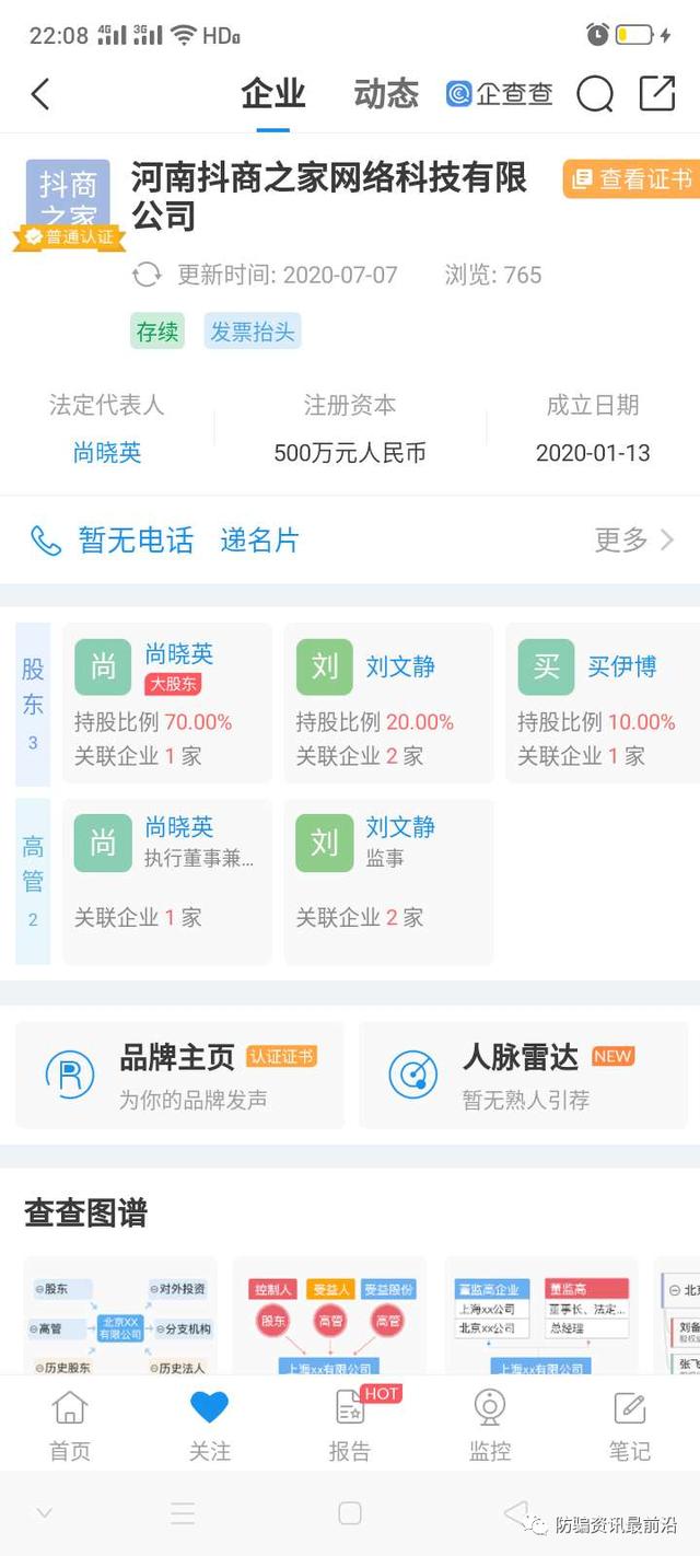 近日本网接到投诉举报,河南抖商之家网络科技有限公司以抖音带货为名以交纳798元和12800元获得加入资格。加入后,发布视频获得佣金,同时发展人员加入获得返利。涉嫌开展传销活动。小编通过企查查查询到河南抖商之家公司成立于今年年初,注册资金为500万元实缴资金为0.法人为尚晓英