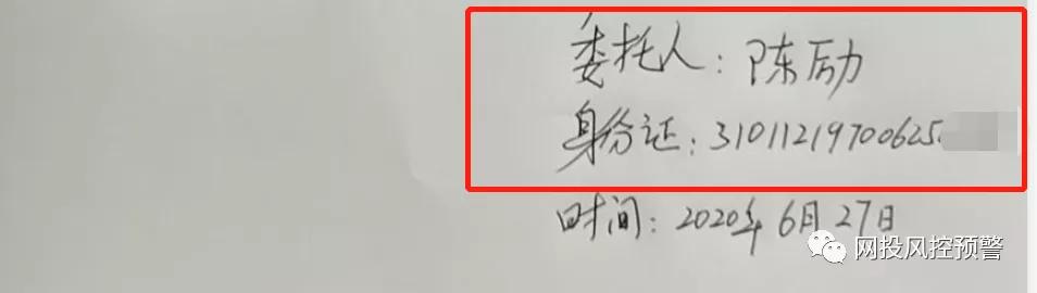 从陈励2020年6月27日亲笔书写的一份委托书中我们可以知晓,陈励的身份证号码为31011219700625xxxx。