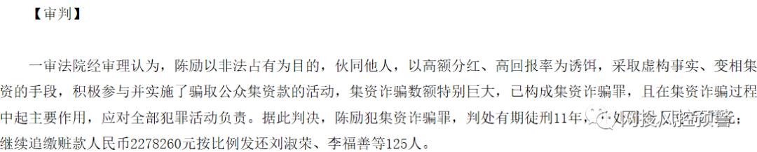 据知情人士称,陈励有因集资诈骗最被判11年的事实。