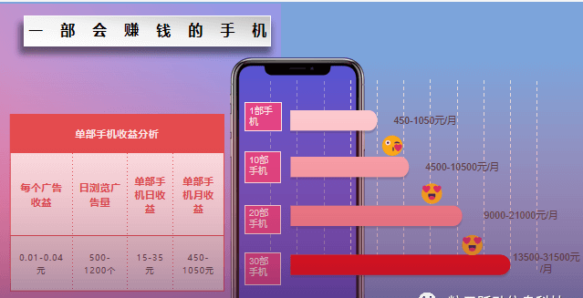 一部手机1个月的收益在450--1050元