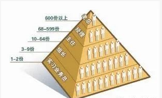 为加入鼓动成员积极发展下线购买份额以牟取非法利益,该组织建立“五级三晋制”从低到高组成层级,从发展下线人员购买虚拟份额的费用中获取收益,并依据自己及下线人员购买虚拟份额的数量,划分为业务员-组长-主任-经理-老总五个级别,累计有600份份额并有29个直接下线为经理级别的人员就晋升为老总,诱骗他人加入的传销活动,骗取财物。