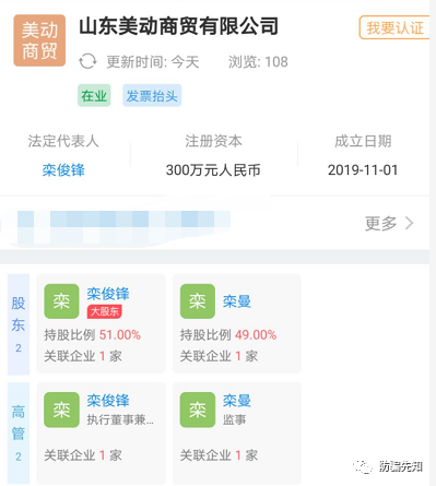 据企查查显示,山东美动商贸有限公司成立日期,2019年11月1日,法人栾俊锋,注册资本300万,实缴0元,无专利,无商标注册,无资质证书,公司成立至今仅八个半月。