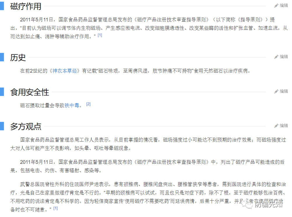 2011年5月11日,国家食品药品监督管理总局发布的《磁疗产品注册技术审查指导原则》中,列出了磁疗产品可能造成的后果,包括电击、灼伤、有害辐射、感染等。