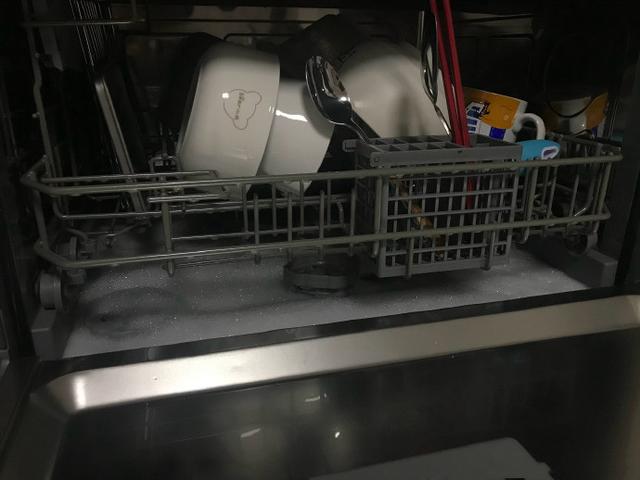 “碗是清洗完成已经烘干了,可以看到下面全是泡沫,每一次都这样,导致洗完的碗得二次清洗消毒怕洗洁剂残留。”陈女士告诉记者,在第一次维修后,她发现了洗碗机出现了洗完碗并烘干后仍存大量泡沫的问题,为了验证是洗碗机问题还是洗碗块的问题,她还用了4款不同品牌的洗碗块清洗,而结果别无二致。