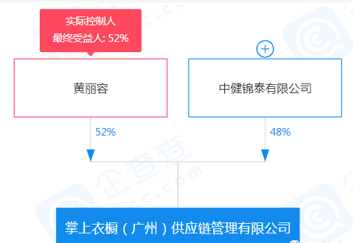 企查查显示掌上衣橱(广州)供应链管理有限公司股东为黄丽荣52%与中健锦泰公司48%。需要说明的是,此前舆情观察网曾发布的中君国际豪享拼,其创始人罗永亮也并未拥有豪享拼的股权,业内人士认为此举可在骗局崩盘时轻易脱身。