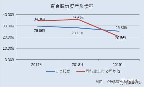 据招股书,2017-2019年,百合股份的资产负债率分别为29.86%、28.11%、25.36%。同期,百合股份同行业上市公司仙乐健康科技股份有限公司(以下简称“仙乐健康”)的资产负债率分别54.95%、49.21%、17.55%;汤臣倍健股份有限公司的资产负债率分别为16.06%、29.65%、28.8%;石药集团新诺威制药股份有限公司(以下简称“新诺威”)的资产负债率分别为32.08%、28.15%、15.32%。