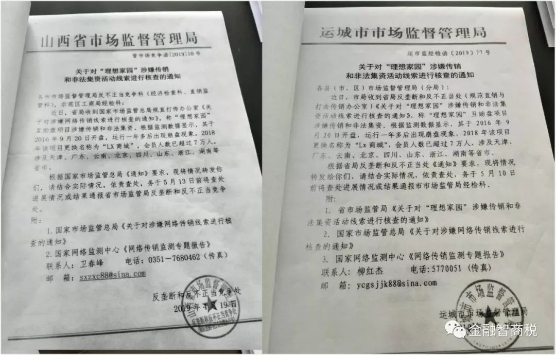 2019年3月,国家市场监督管理总局、重庆市市场监督管理局、山西省市场监督管理局等部门,针对“理想家园”涉嫌传销发布核查通知。六大体系领导人害怕受到公安机关等部门的打击处理,随即全部逃往国外。