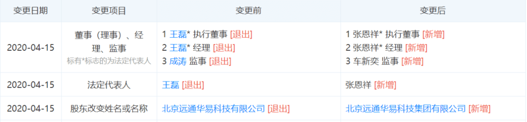 据天眼查显示,远特(北京)通信技术有限公司成立于2004年10月19日,实缴资本为3000万元,张恩祥担任法人、经理与执行董事,该公司由北京远通华易科技集团有限公司100%控股。值得注意的是,2020年4月15日,该公司进行了人员调整,原法定代表人、执行董事、经理王磊变更为张恩祥,监事成涛 变为车新奕。此外,其下8家分支机构,除湖南省外,均被注销。