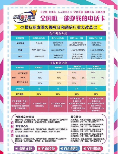 据相关人士透露,尽管远特公司宣称获得了全国64个城市的170、171号码的资源,获得了虚拟运营商的牌照,但是在经营过程中,远特公司却利用自己虚拟运营商的身份,对自己旗下的电话卡业务进行的“拉人头”、“分等级”、“团队计酬”的行为,加盟等级分为商户、推广门店、运营中心和战略合作,每个等级的要求都是需要拉人头,还能获得人头费。其实这就是“挂羊头卖狗肉”从模式上已经符合了《禁止传销条例》的规定,触及了传销的法律红线。