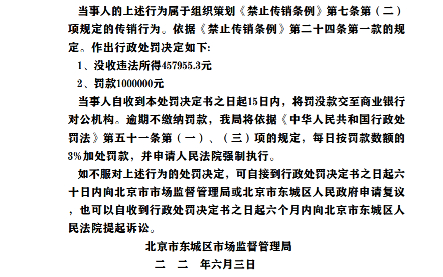 北京“正生汇通”公司因涉嫌传销被罚没145万多元
