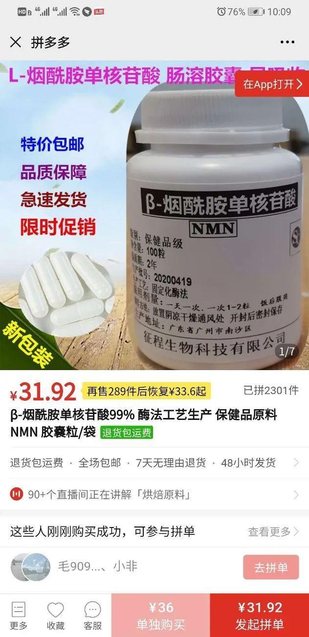 有不愿具名业内人士则表示,中国尚未被批准NMN用于普通食品或保健食品,网上售卖原粉给普通消费者食用,属违法行为,拼多多、淘宝网等平台应立即予以制止,食品安全监管部门也应介入监管。