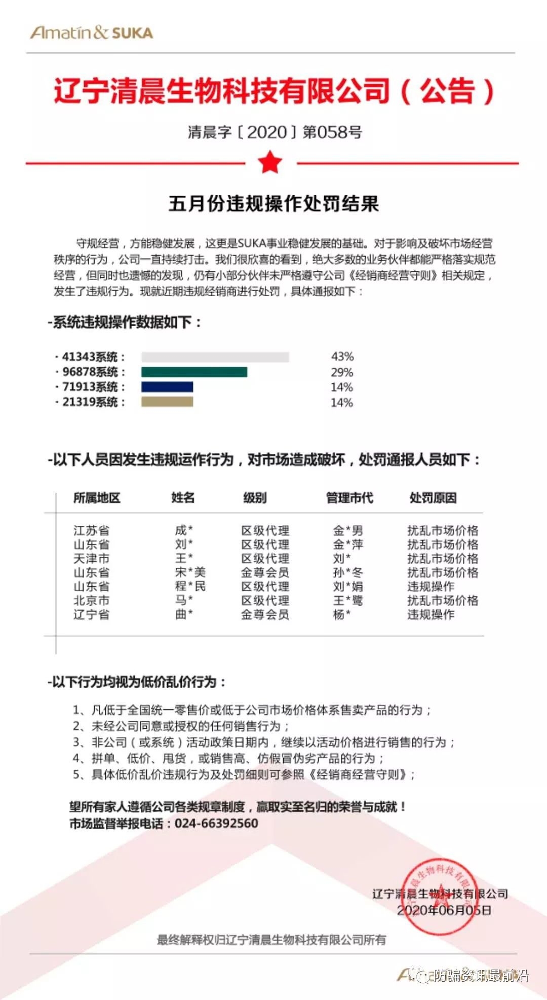 2018年的时候,公司的奖金制度就是直销制度,提成分利!但是,因为没有直销牌照,很多人举报‘没有拿到直销牌照其性质就是传销’。后来还有工商查。为了合法性,老板就花1亿元,收购了拥有直销牌照的清晨生物。”