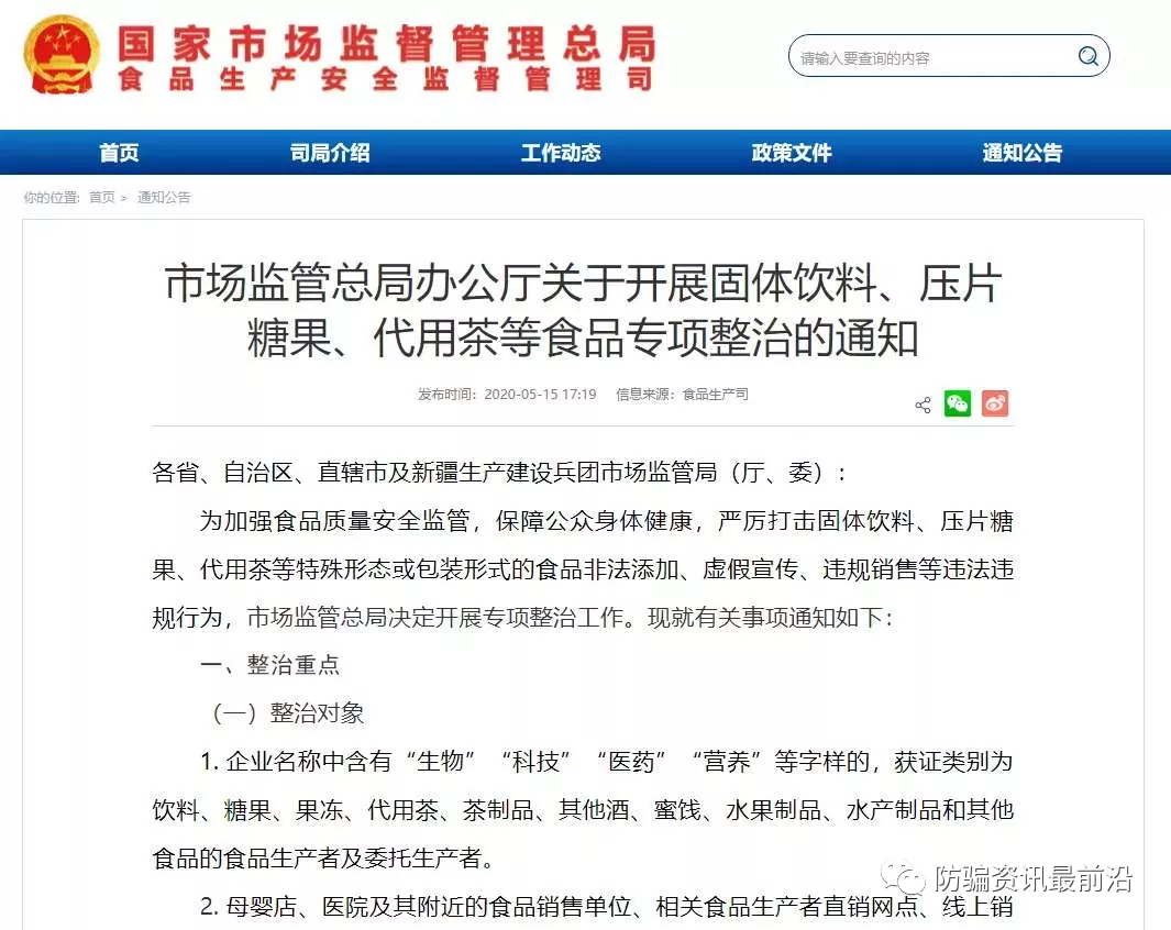 《通知》提到,各地市场监管部门要对有委托生产、涉嫌疾病预防、治疗及保健功能声称或“纤体”“瘦身”等类似宣传用语、有适宜人群或定量食用的食品,加大抽检监测力度。重点检验与宣传用语相关的物质是否符合规定,是否非法添加咖啡因、双醋酚丁、匹克硫酸钠、麻黄碱、伪麻黄碱、酚酞、西地那非、育亨宾、布洛芬、盐酸二甲双胍、γ-羟基丁酸等药品、非食用物质以及其他可能危害人体健康的物质。