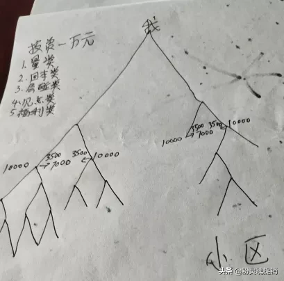 三是“层碰奖”:从第二层开始算,每个点位名下积够2个点位分别再生a区b区,a区再生c区d区,b区再生e区f区……该奖励可以拿到无限层;
