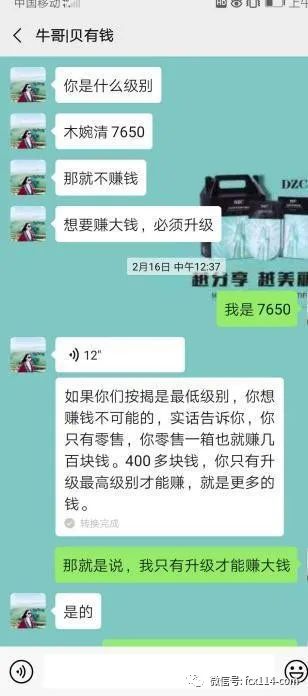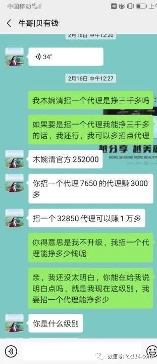 根据举报信息和多方调查,贝有钱实际上是木婉清代餐粉的其中一个微商运营团队,主要负责为木婉清招收代理,拉下线,用各种套路威胁代理们升级,收取大额的代理费用。