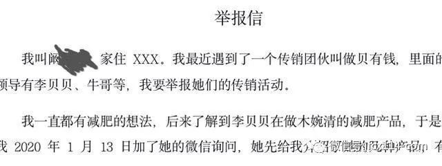 然而很快能够预想到的事情就发生了,一个叫贝有钱的微商团队被多人举报,原因是新型传销诈骗。