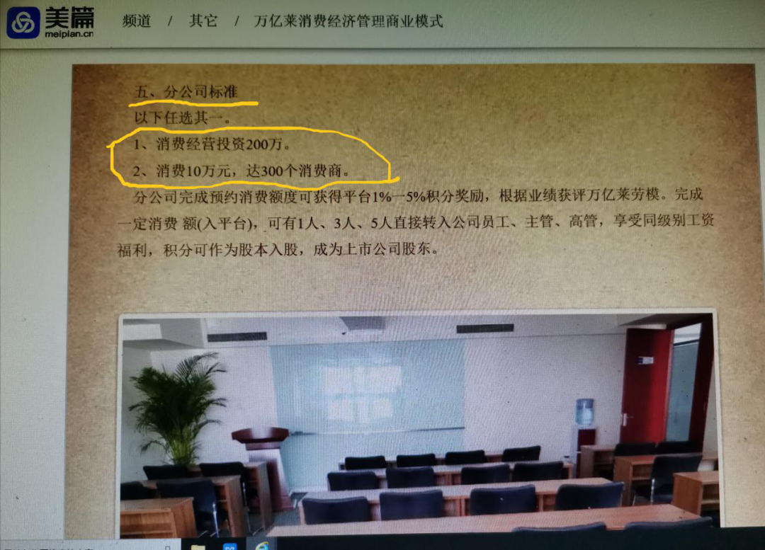 加入“万亿莱”做地方分支商城的门槛并不低,当时万亿莱的经理人在网上有入门条件公布: