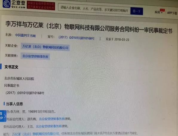 并不是所有的人都能被张茂龙吓唬住的。2017年5月,一位叫李万祥的先生在多次向张茂龙索要被欺诈的款项无果后,把当时还是张茂龙把持的“万亿莱”告上了法庭。