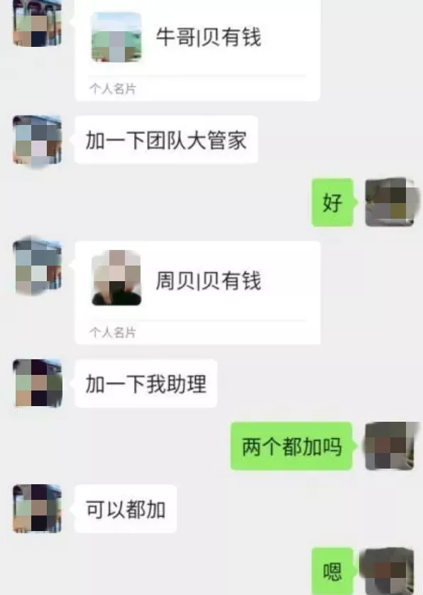随后,张权根据上级的指示疯狂的加紧拓展代理,将自己的朋友一个个的拉了进来,期间也有朋友善意提醒张权这个项目有问题,但是直到他将自己的朋友资源都用尽枯竭的时候,他终于清醒了,然后找到贝有钱团队长沟通,但也无法要回投入的本钱。