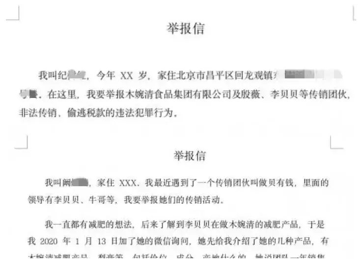 近日,多家自媒体爆料了一家名为“贝有钱”的微商团队遭网友举报的消息,而据举报的网友表示,“贝有钱”目前是“木婉清”代餐粉的微商运营团队之一,主要负责为木婉清招收代理以及发展下线,用各种套路忽悠代理们花钱升级并收取大额的代理费用。