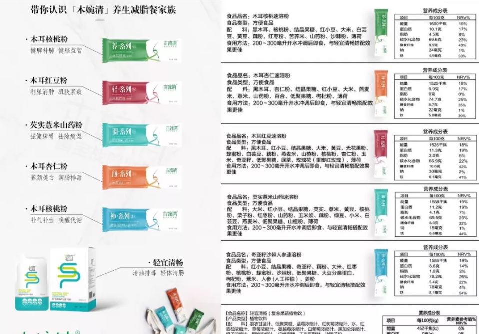 结合木耳多糖的“神奇”功效,木婉清食品使用木耳粉与其他食品的结合衍生出了多个系列产品,诸如木耳核桃的“养系列”,主打滋润益智;木耳杏仁的“颜系列”,主打排毒抗氧化;木耳红豆的“轻系列”,主打营养饱腹。当然还有其他产品,在此不做一一列举。
