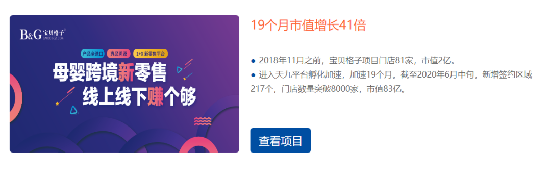 再来看天九共享集团孵化的一个母婴跨境电商项目,名为“宝贝格子”,这是个新三板挂牌公司,目前总股本1.12亿股、最近一次成交价为22亿元,对应总市值不到25亿元,但是在天九共享网站上,却标注“目前市值83亿”。