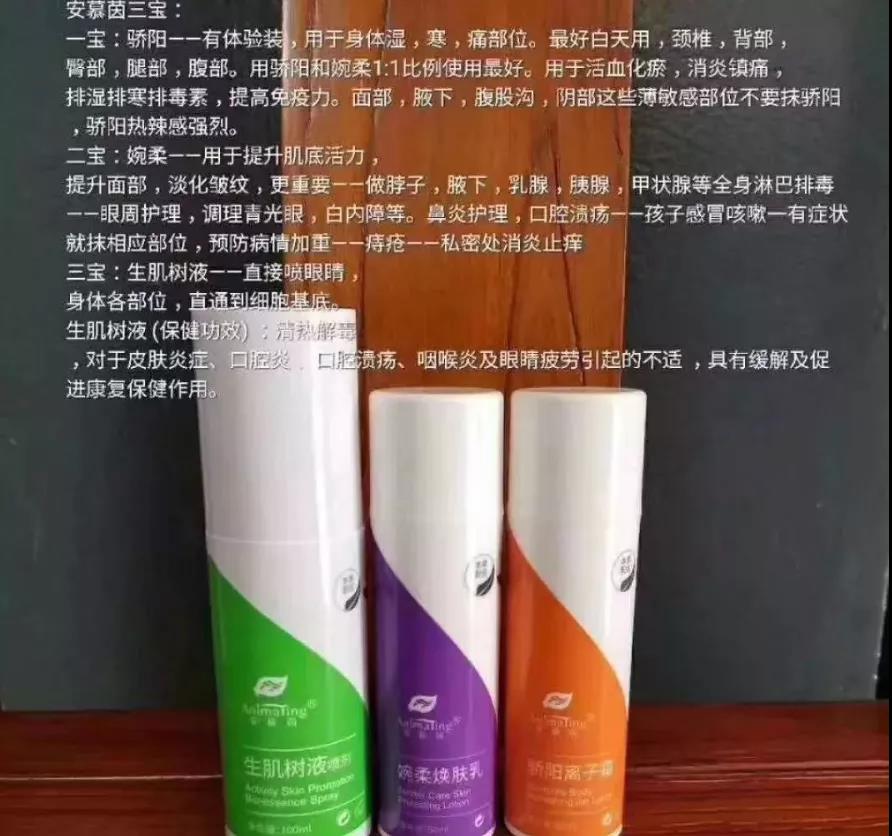而据相关经销商称,安幕茵骄阳离子霜的核心技术为离子液态盐技术,透皮3-5cm,每秒上亿次震荡。因此可以清理机体环境,包括血管、淋巴管、经络以及细胞内,从而实现细胞代谢的正常,提升人体能量,消灭身体的疾病与亚健康状态。安幕茵改变了传统就医用药的观念 :不吃药,不打针,不输液,不手术,皮肤涂抹就有效。