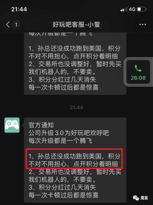 根据该客服的回复内容以及其它传销骗局的跑路套路来看,“好玩吧”崩盘跑路几乎是没有什么悬念了。目前,很多“好玩吧”的用户已经建立了维权群。关于“好玩吧”后续发展情况,鹰鉴也会持续关注的。