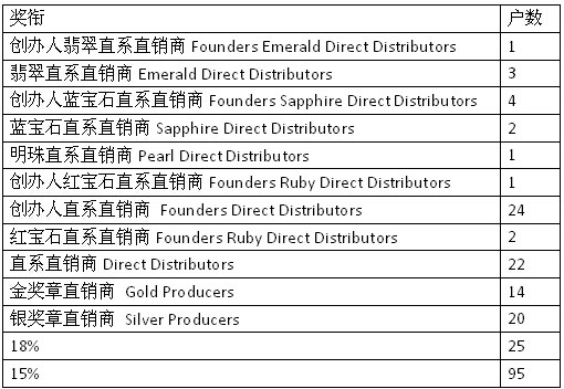 台湾安利2014年11月各奖衔户数: