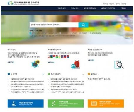 韩国化妆品产业研究院(院长 Kim Deokjung)从11月7日公开‘各国家化妆品原材料综合信息系统’,此系统综合了‘各国家原材料限制DB’和‘化妆品原材料安全性评价DB’系统。