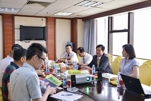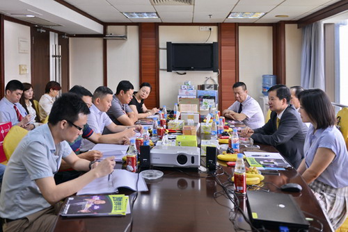会议现场,陈怀德先生向市工商局领导汇报富迪公司的经营情况