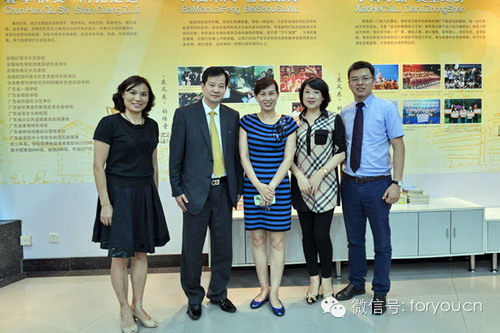 陈怀德、胡静、黄悦(右一)与东风东路小学相关领导合影留念