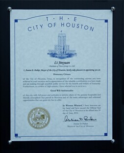 此外,会议期间,李金元董事长还获得休斯顿荣誉市民荣誉证书。