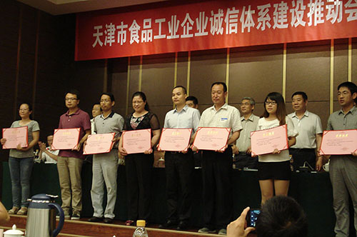 2014年6月20日,由天津市质检院诚信管理体系建设研究中心举办的天津市食品工业企业诚信体系建设推动会暨经验交流会在津召开,天津市各级食品药品监督局、质量监督局及各新闻媒体等参加了此次大会,会议旨在表彰、肯定天津市通过诚信体系评价的食品工业企业并颁发了证书,同时,我集团选送的两篇论文《论信息化管理中的诚信体系建设》、《诚信是金》入选“天津市诚信管理体系建设学术研讨会论文集”,铸源集团产品质量部部长岳兰华女士出席会议并接受嘉奖。