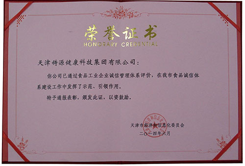 目前,我市已经有51家企业申报了诚信体系建设试点,其中16家企业通过了评价,我铸源集团做为唯一一家专业研发、生产保健食品的企业位列其中。市经济和信息化委主任孙钢通报表彰了这16家通过评价的企业,这16家企业通过建立企业诚信教育机制、失信因素识别机制、诚信信息采集机制、自查自纠改进机制和失信惩戒公示机制等,使一切生产经营活动都处在诚信制约之下,有效降低了企业失信的风险,为天津市食品工业企业诚信体系建设工作的开展和推进做出了贡献。食安办副主任于羚对相关企业的下一步工作做出了明确指示:各企业要高度重视加强诚信体系建设的重要意义,市经信委继续指导督促,严格依法行政,发挥信息平台作用,加大政策扶持力度,加强诚信队伍建设,加大宣传力度,力争天津市食品工业企业诚信体系建设再上新台阶。