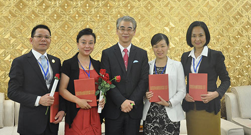 金日制药(中国)全球营运总裁赵永甲先生与市场发展委员会委员汪国胜先生合影