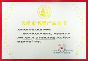 2014年7月,经天津市及武清区多个政府部门严格审核,天津天狮生物工程有限公司生产的“天狮牌虫草菌丝体胶囊”荣获2013年度“天津市名牌产品”称号。“天狮牌虫草菌丝体胶囊”是本年度唯一获此殊荣的保健食品,也是继天狮“营养高钙冲剂”和“锌补晶胶囊”之后又一款获得此项荣誉的产品。