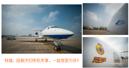 此次尊享之旅专为林瑞、陆敏伉俪订制,两架商务飞机其中一架以“林瑞、陆敏号”命名,机上的设施也处处体现了“订制”的与众不同,甚至拖鞋上都打上了林瑞、陆敏的专属。