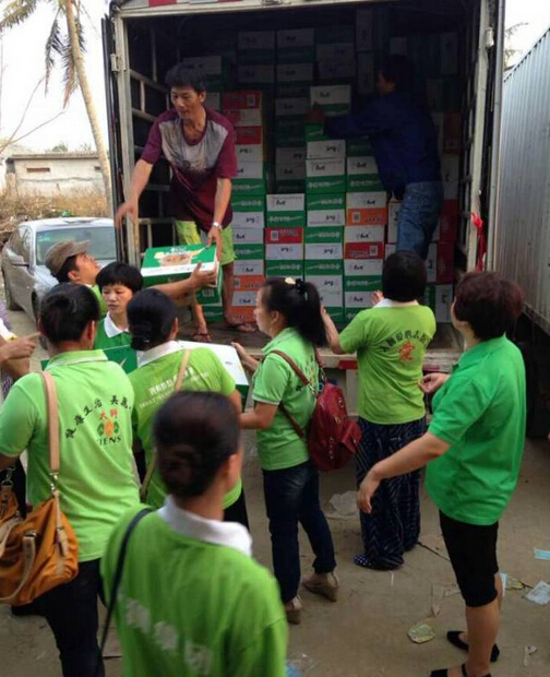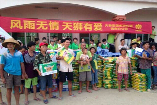 2014年7月24日下午,天狮集团海南分公司志愿者团队抵达因台风“威马逊”肆虐受灾严重的海南省文昌罗豆农场,将当地急需的粮食、食用油以及饮用水等首批救灾物资分发给当地的400户受灾民众,为灾区人民解决实际生活困难,奉献一片爱心。受助群众纷纷对天狮的爱心义举表示真挚的感谢。