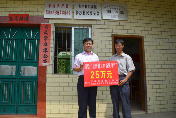 在响应省、市扶贫开发“双到”(规划到户、责任到人)工作中,荣格坚守企业使命,紧紧围绕助农、助学、助医等重点内容,制定了专门的帮扶计划,并坚持参与福田区定点帮扶对象——河源市和平县彭寨镇长沙村各项建设,包括计划为该村修建卫生所、文化广场、灌溉水渠,完善村道、路灯,改善村委会办公条件、壮大村集体经济、扶持贫困户发展种植、养殖……荣格实实在在的帮扶,受到社会各界的广泛关注和村民们的好评。
