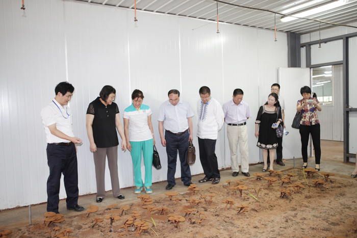 8月12日,河北省唐山市政协副主席张艳春一行来到安惠生物科技园,参观中华灵芝文化馆、蕈菌生态园。南通开发区党工委副书记周建、安惠公司副总经理曹昌贵等陪同参观。