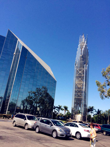 恋恋不舍地离开新港滩,嘉人们来到了洛杉矶市橙县参观水晶大教堂。这座建筑呈哥特式建筑风格,气势恢宏,是由美国著名的建筑师、金牌优胜者菲利普・约翰逊与他的伙伴约翰・布尔吉设计的。教堂长122米,宽61米,高36米,可容纳一万多人,规模超过了著名的法国巴黎圣母院。教堂的外部全部为银色玻璃所覆盖,晶莹透亮,水晶大教堂即因此而得名。更让世人称道的是水晶大教堂的建造过程,这座教堂的建造自1980年9月起,历时12年,所花费的2000万美元全部是由罗伯特·舒乐博士一点点筹集的,堪称世界建筑史上的一个奇迹。