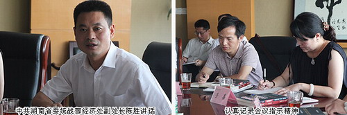 听完胡国安董事长、董事常务副总裁劳嘉的工作汇报后,湖南省工商联党组成员、副主席陈宏忠,湖南省工商联会员处处长谢明亮,中共湖南省委统战部经济处副处长陈胜等对绿之韵“关注三农,造血式扶贫回报社会”的成功做法给予了充分肯定和高度赞扬。陈宏忠副主席指出:作为湖南本土企业,绿之韵集团不仅是我省保健食品龙头企业,也是心怀天下、履行社会责任的标杆型企业;不仅在利税、创业就业、关爱员工等方面不遗余力,而且在“三农”建设、同心工程、光彩事业、非公党建等方面的贡献尤为突出,真正是一家具有强烈社会责任感、拥有巨大发展潜力的民族企业,值得全省广大企业借鉴和学习。陈宏忠副主席进一步强调:当前,我省正处于加快转变经济发展方式、推进“四化两型”建设的重要时期。绿之韵一定要坚持以产品为导向,做好做强核心主业,增强企业核心竞争力;重视科技创新,重视产业布局,坚持把企业经营提升到了稳定社会的高度,为“助推湖南科学跨越发展”发挥出更大的示范带头作用,为全省经济社会发展作出更大的贡献!