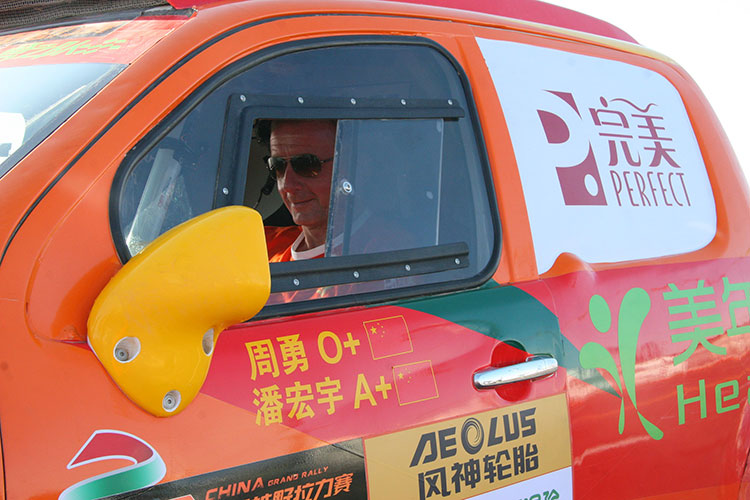 “美年大健康·完美中国·勇之队”周勇状态回升,在第三阶段比赛中位列第四。赛后卫冕冠军周勇在和导航员、技术顾问交流过程中,提及自己对轮胎胎压控制方面越来越有感觉;他自己的比赛才刚刚正式开始。在赛后接受中央电视台采访被问到怎样看待CGR时,周勇表示,父母给自己取的名字中有个“勇”字,就是希望他能敢于面对困难,勇于挑战。每一场比赛就像一场战役,需要考虑很多因素。有着多次参加达喀尔拉力赛经验的他有一个梦想——由自己组队参加达喀尔拉力赛——也正是这个梦想,让鬓角有些许银丝、眼角泛红的他,坚毅地向着更远的前方迈进!